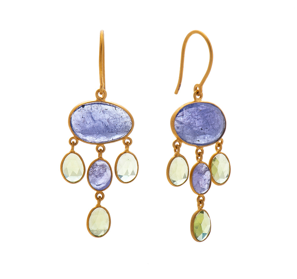 Nava Zahavi Yellow Gold Tanzanite Peridot Dangling Earrings