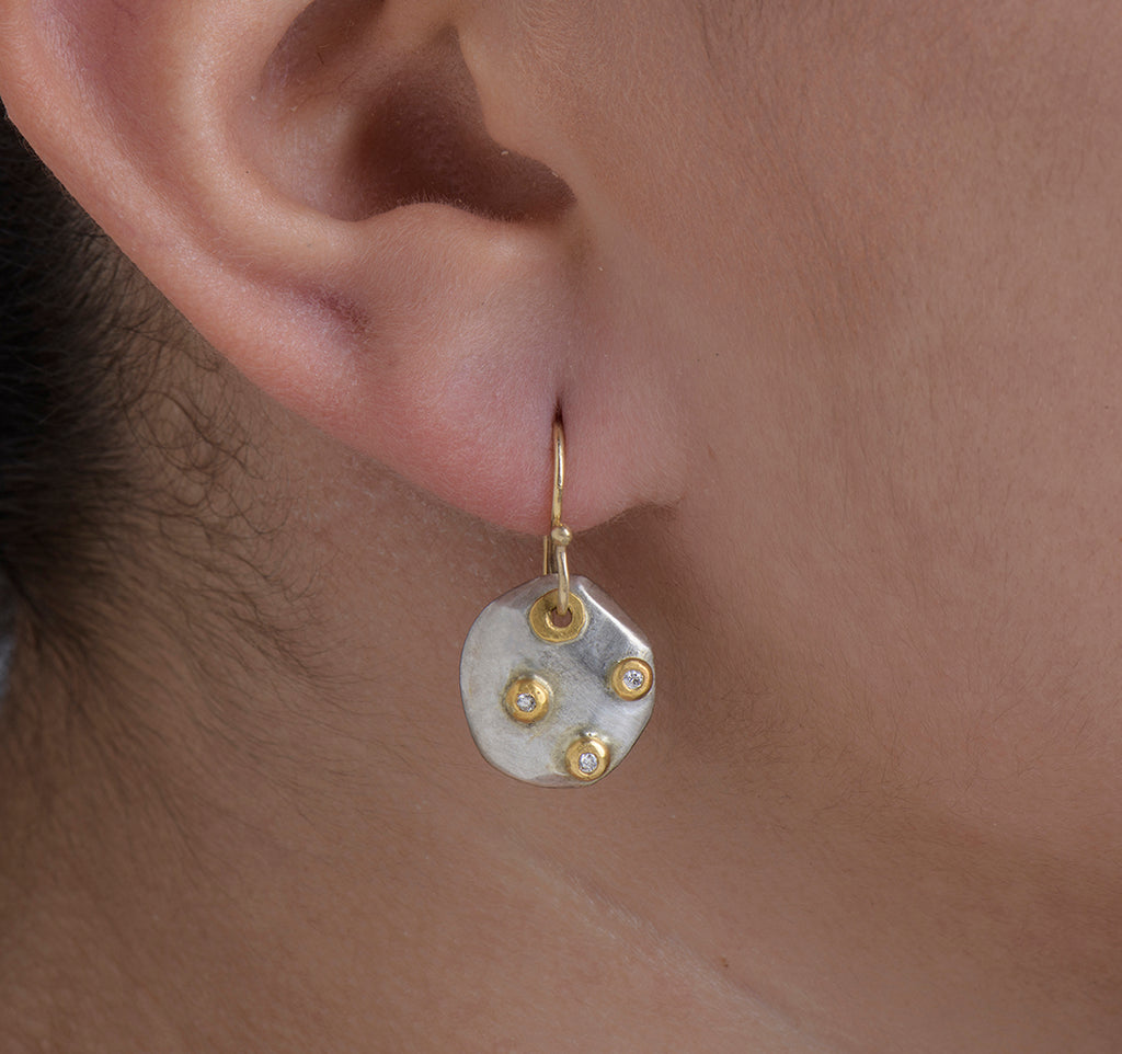Nava Zahavi Diamonds, Gold on Sterling Silver Earrings