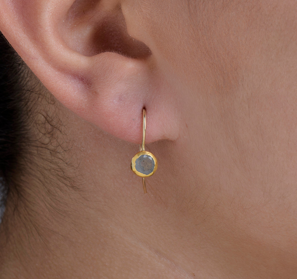 Whether worn for everyday sophistication or as a special accent for formal occasions, these earrings are sure to become a cherished addition to your jewelry collection. Embrace the understated elegance and timeless charm of our Round Small Aquamarine Earrings wrapped with 24K Gold, a perfect blend of luxury and simplicity.
