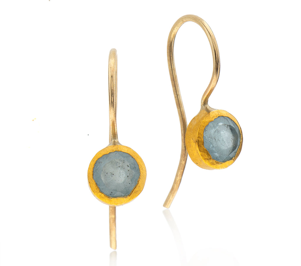 Nava Zahavi Small Yellow Gold Aquamarine Earrings
