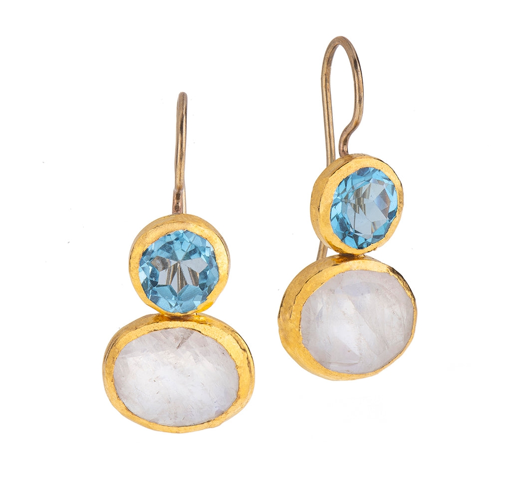 Nava Zahavi Yellow Gold Blue Topaz and Moonstone Earrings